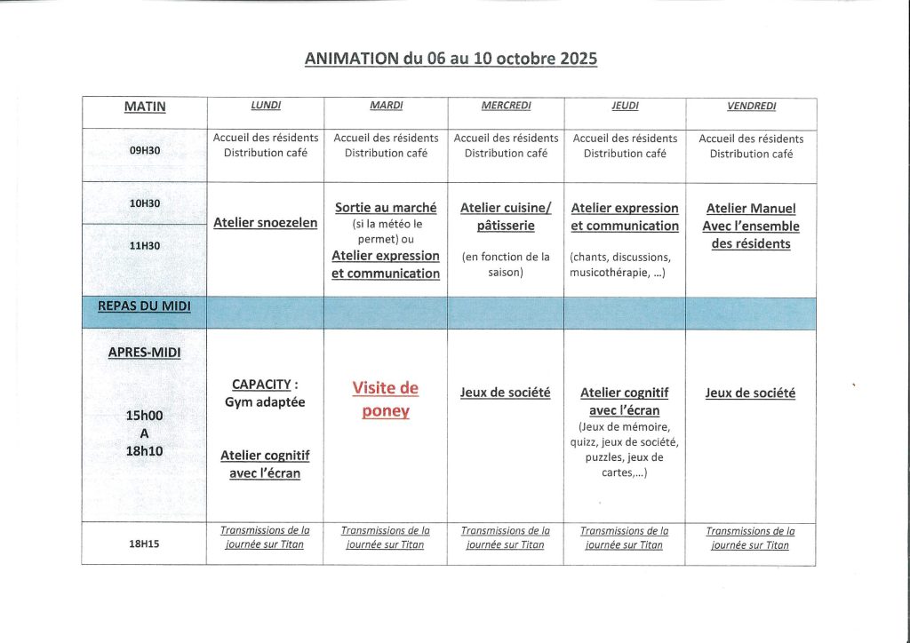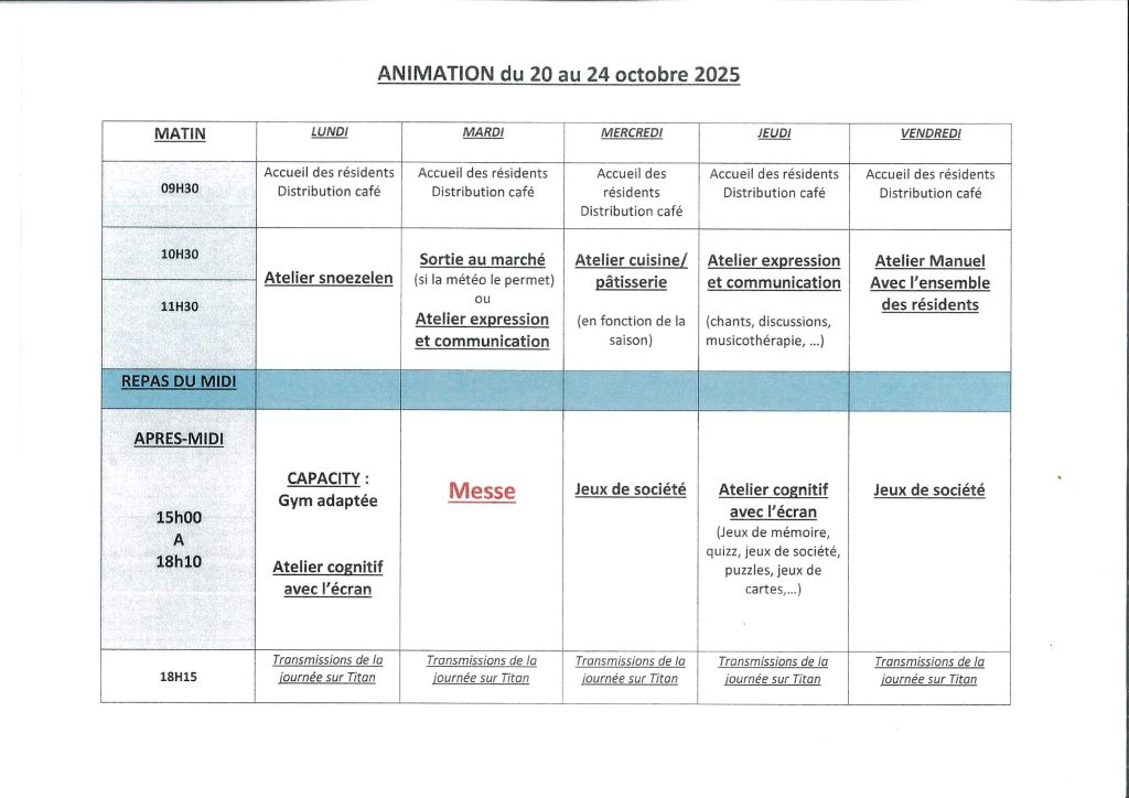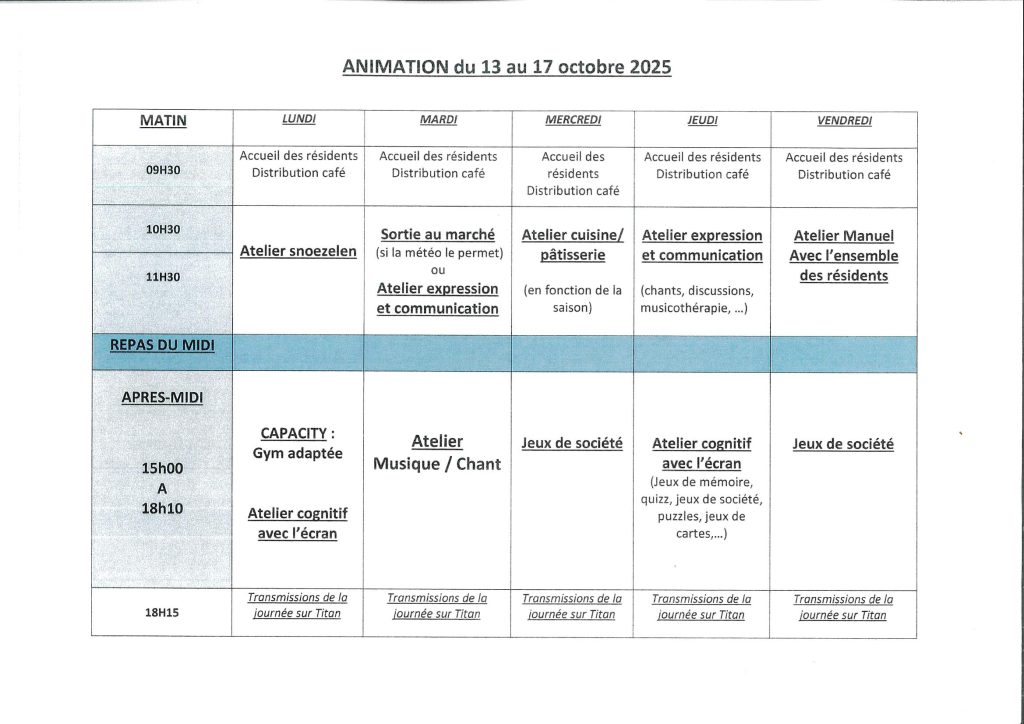 Activités proposées